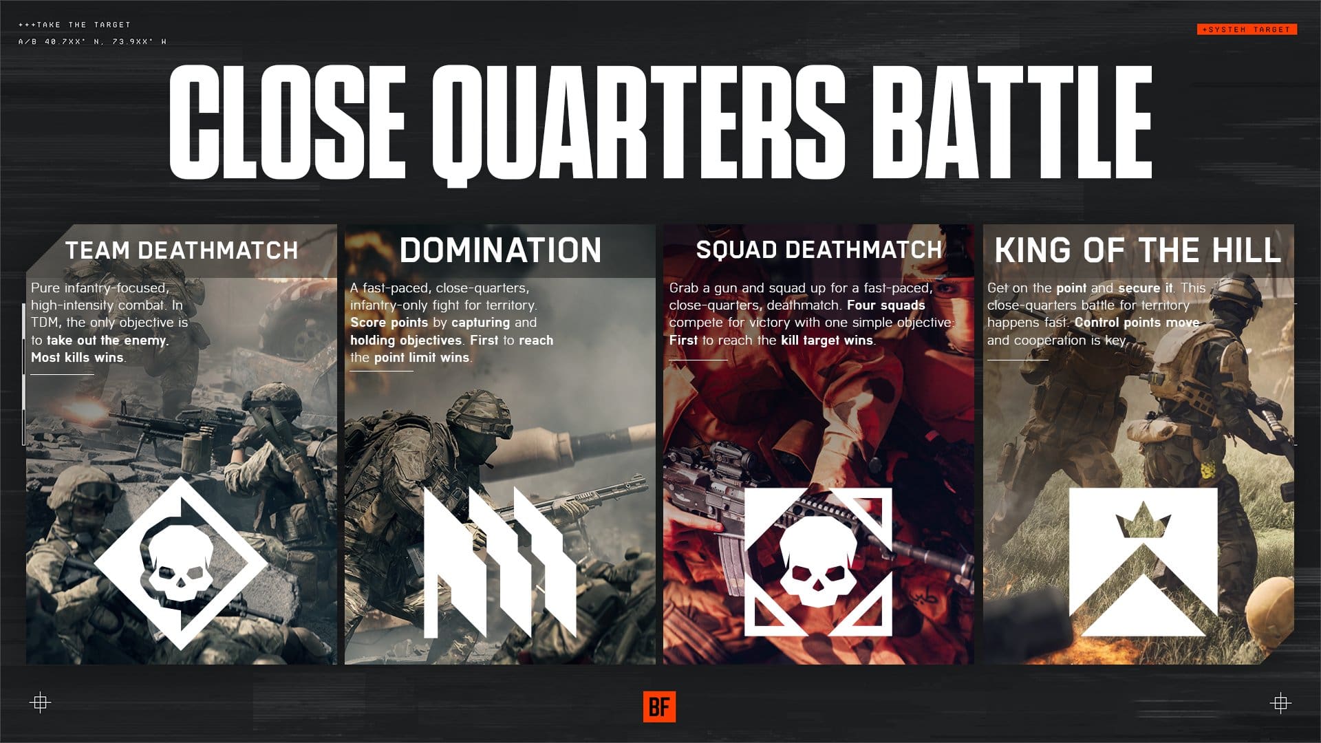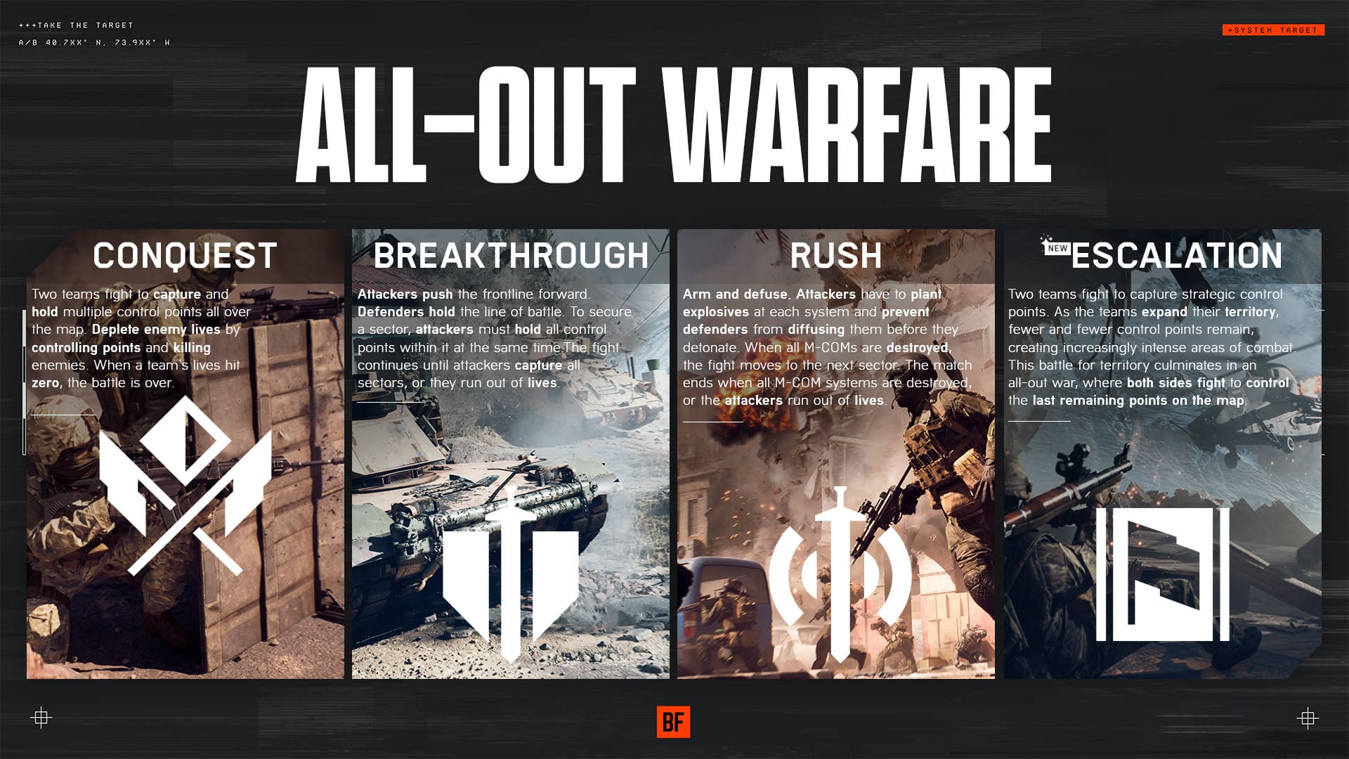 Conquest, Breakthrough and Rush have all been confirmed to be returning modes, alongside EAM Deathmatch, Squad Deathmatch, Domination and King of the Hill.