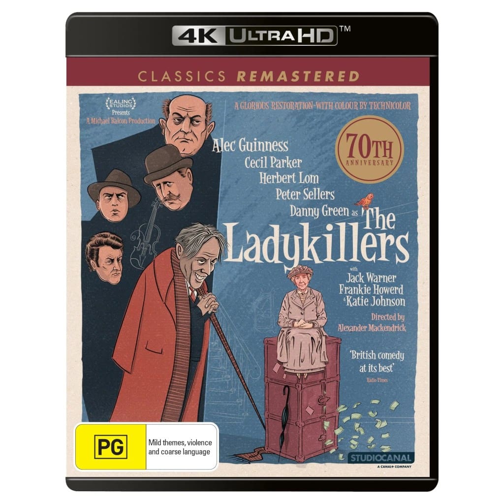 This stunning new restoration of 1955 Ealing comedy THE LADYKILLERS and the first from the original 3 strip Technicolor negative, showcases Alexander Mackendrick’s vision in its full glory. Considered by many as the finest British comedy ever made, THE LADYKILLERS follows the hilarious capers of a group of small-time crooks, taking on more than they can handle in the form of their sweet elderly landlord, Mrs. Wilberforce (BAFTA Award winning actress Katie Johnson; How To Murder A Rich Uncle). The criminal gang, posing as a string quartet, are unprepared for their landlord’s meddling when one of the ‘musicians’ cases gets caught in a door, revealing the group’s true identity. Featuring an impressive all-star lineup, with the finest comedy actors of the day; Alec Guinness (Kind Hearts and Coronets, Lavender Hill Mob) plays the gang’s mastermind ‘Professor Marcus’, Cecil Parker (A French Mistress) is Claude otherwise known as ‘Major Courtney’, Peter Sellers (I’m Alright Jack) is Harry aka ‘Mr. Robinson’, Herbert Lom (The Pink Panther) is Louis aka ‘Mr. Harvey’ and Danny Green (A Kid For Two Farthings) plays One Round also known as ‘Mr. Lawson’.