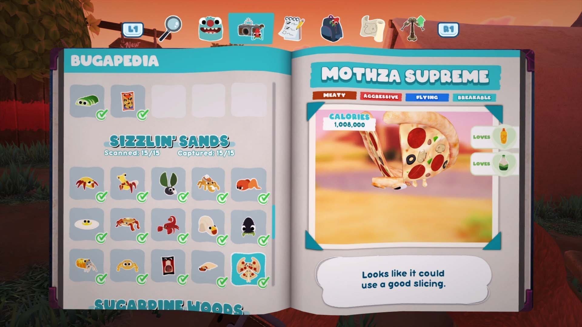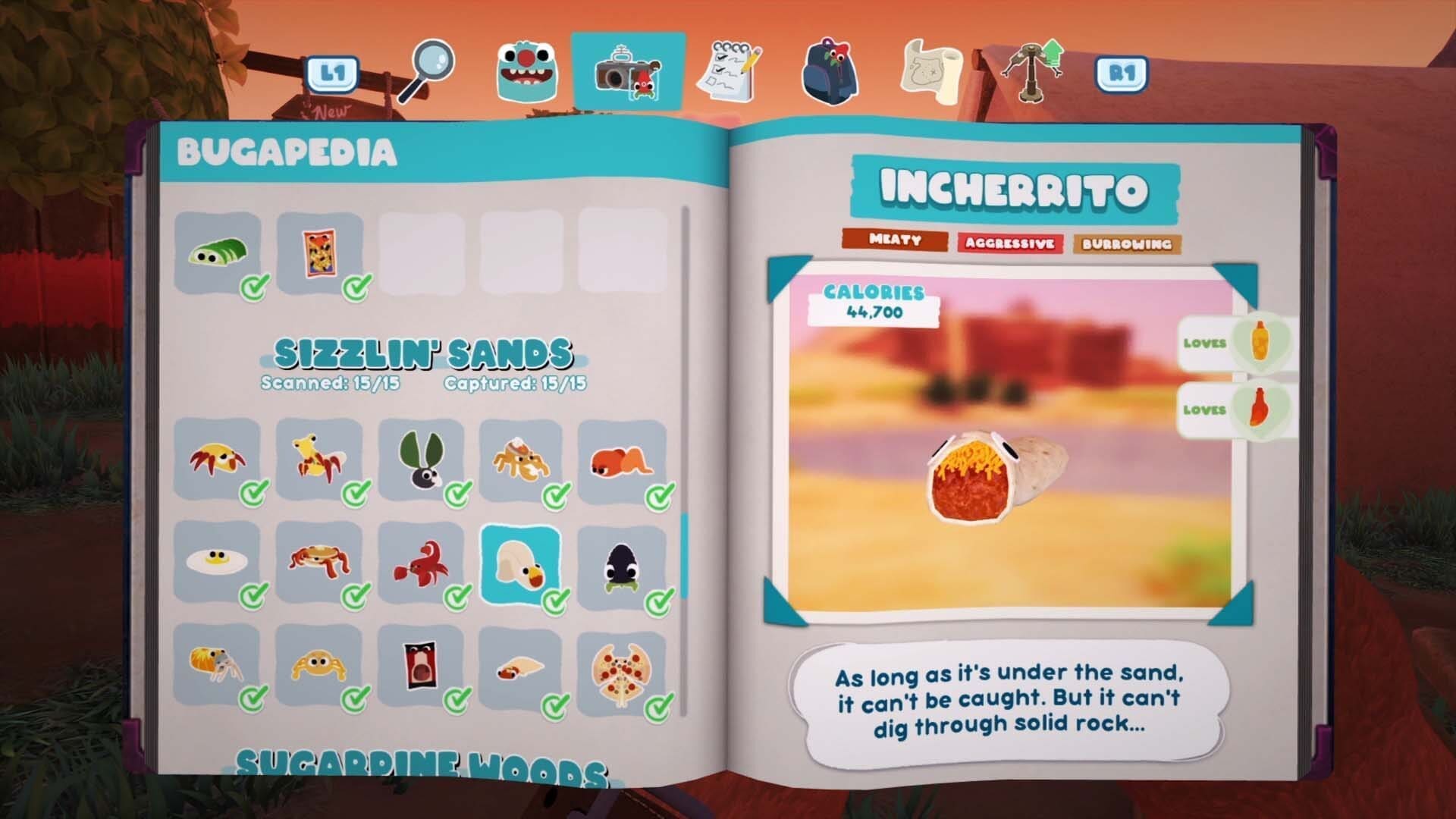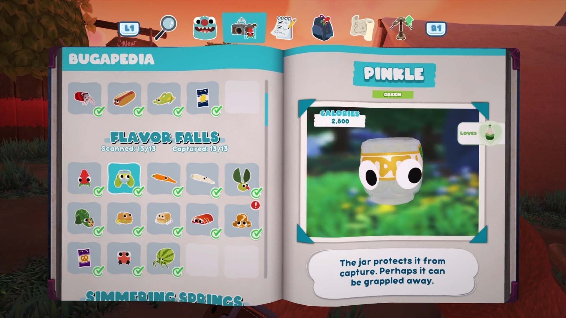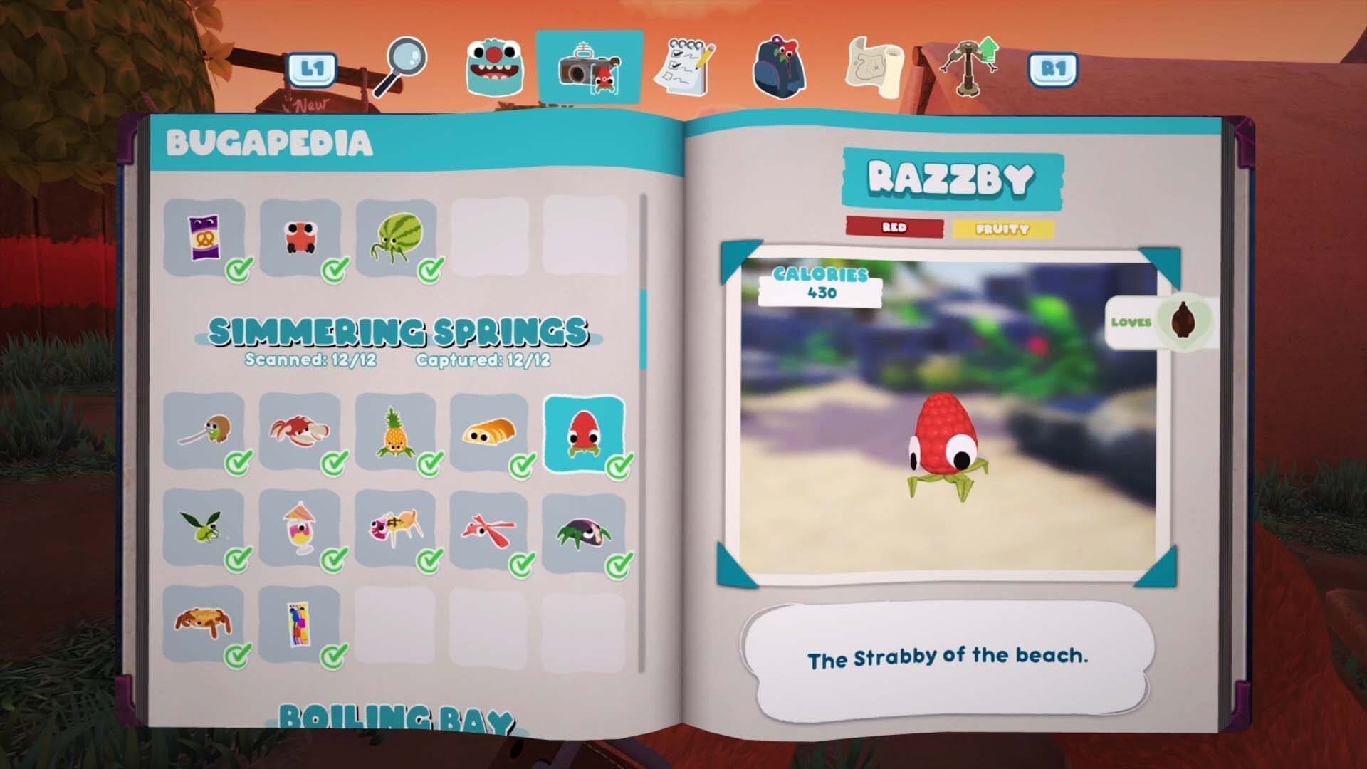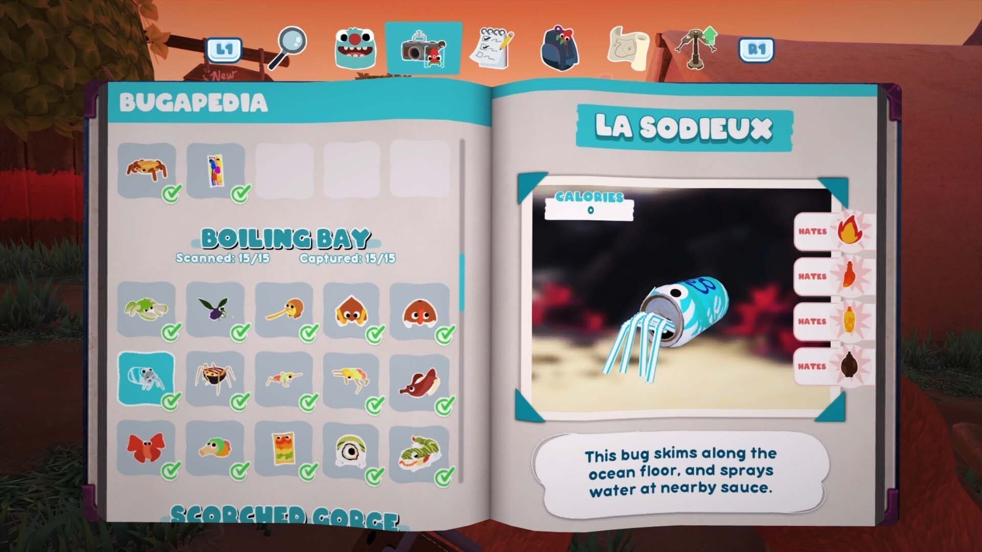 The majority of these are pretty self-explanatory and you won’t need help finding or capturing them, but for the harder one’s I’ve listed some tips. Each page of the Bugapedia lists what sauce each Bugsnax likes and if they only come out at a certain time of day.