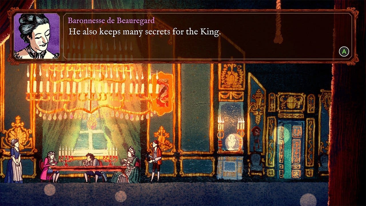 You play as a mute who, after meeting Comte de Saint-Germain while working a crappy job, gets invited to be his partner in crime. He introduces you to a troupe of other trickers and magicians before you begin making your rounds of the rich Counts and Baronnesses’.