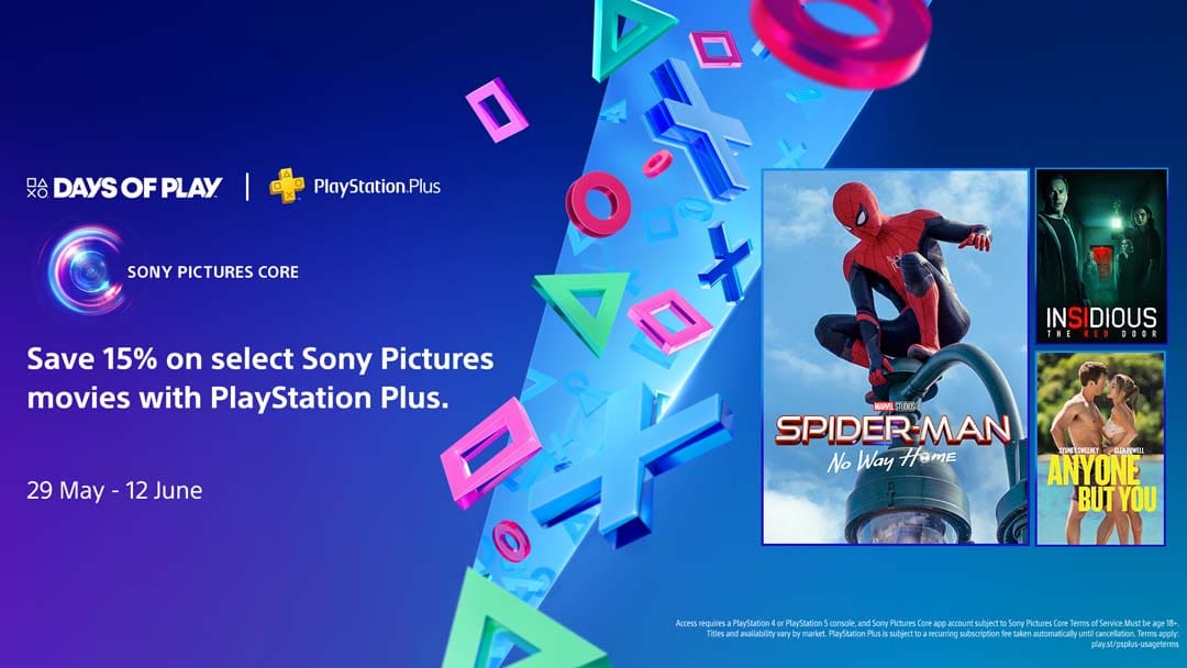 PS Plus members can get 15% off anything on Sony Pictures Core from May 29 until June 12, with additional offers inside the app.