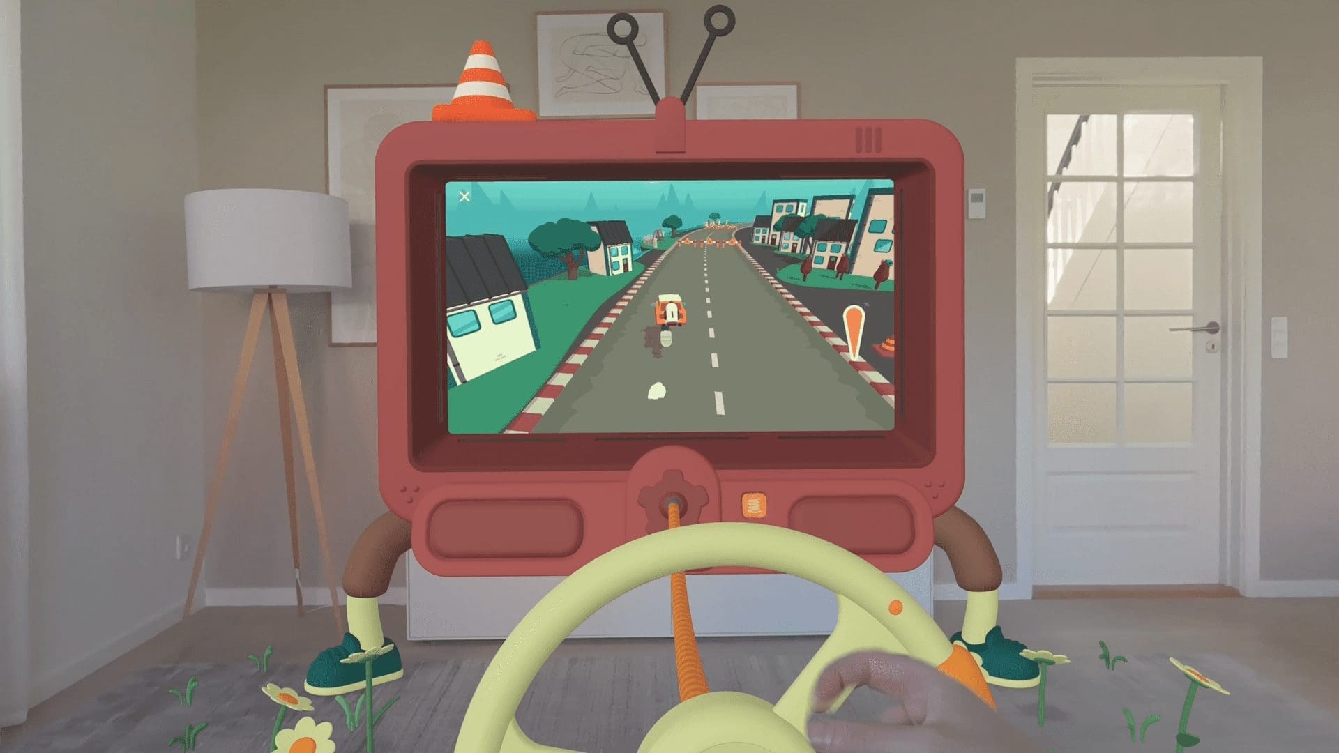 Indie developer Triband’s hilarious racing adventure takes on a whole new dimension. Using a floating TV portal with legs and an extendable steering wheel, players with Apple Vision Pro will use their hands — as if holding a physical steering wheel — to manoeuvre an unconventional race car with constantly changing features, such as legs, wings and even the common cold. The wacky gameplay elements leverage spatial computing to pop out of the screen, making each race an adventure full of lively twists and turns.