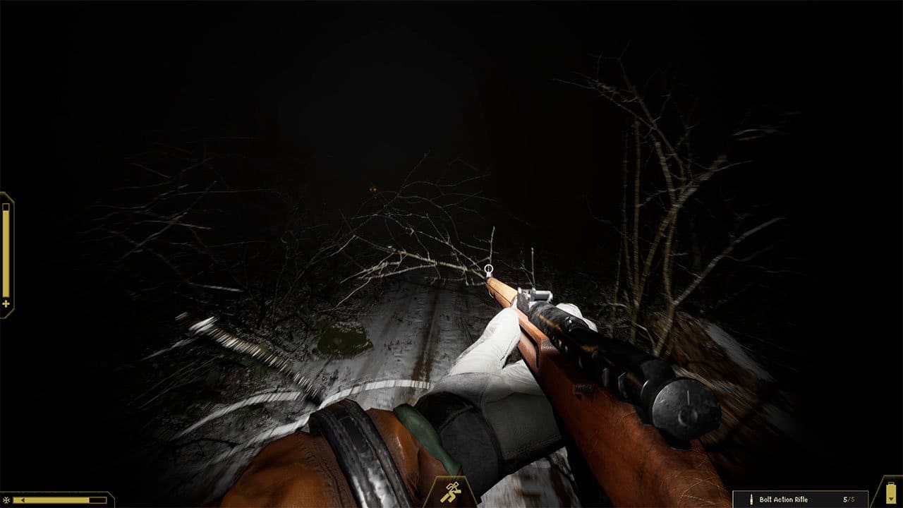After sneaking up to the wall that blocks the way out of the anomaly zone, I meet the only NPC that isn’t trying to kill me in this game. He passes on the task of uncovering data about what’s happening in the forest not far from there. Travelling there with a rifle, a handful of ammo and a flashlight, I soon discovered that strange creatures were following me from tree to tree as I explored the abandoned campsites. Sometimes they’d attack, and I would fight them off; often, it seemed best to move quickly from destination to destination while attempting not to let the rustles of trees above or the creatures’ weird growls scare me too much.