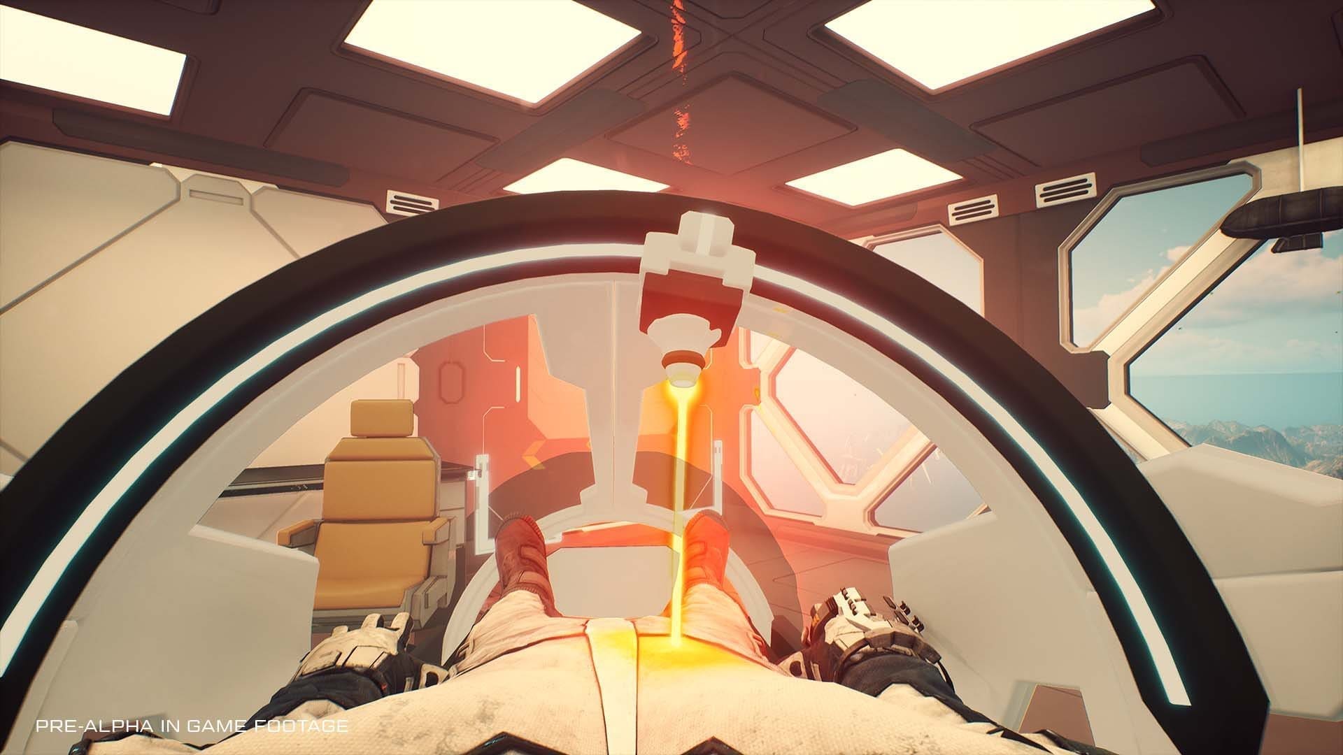 A cold open greeted me for my preview, starting in a landing pod with a contextual note about why you have returned to Earth. Leaving the pod, you step out into the ruins of a skyscraper that feels tall as it sticks out of the Dust, the barrier between the changing world below and the dilapidated skyscrapers that mark the sky as far as you can see. The mood of Forever Skies is set immediately, with a sense of scale and isolation that instantly drew me into the demo.