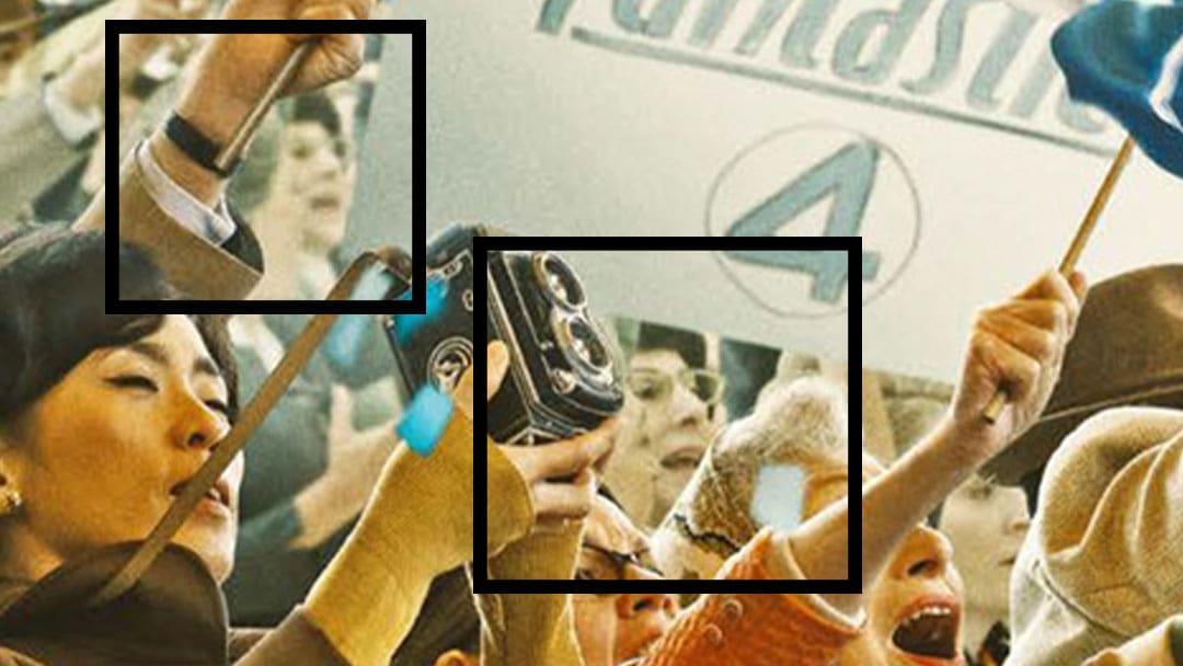 It’s not so much the art choice that grabbed everyone’s attention; instead, it’s two ladies just behind the camera in the ladies’ hand on the left-hand side of the poster.