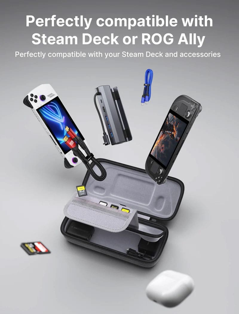 The JSAUX Carrying case for handhelds is a great piece of gear for gamers on the go. Whether it’s the Steam Deck or many other devices coming into the market, we all want to keep them safe and protected. This carrying case does that and includes enough room to carry many of the associated accessories.