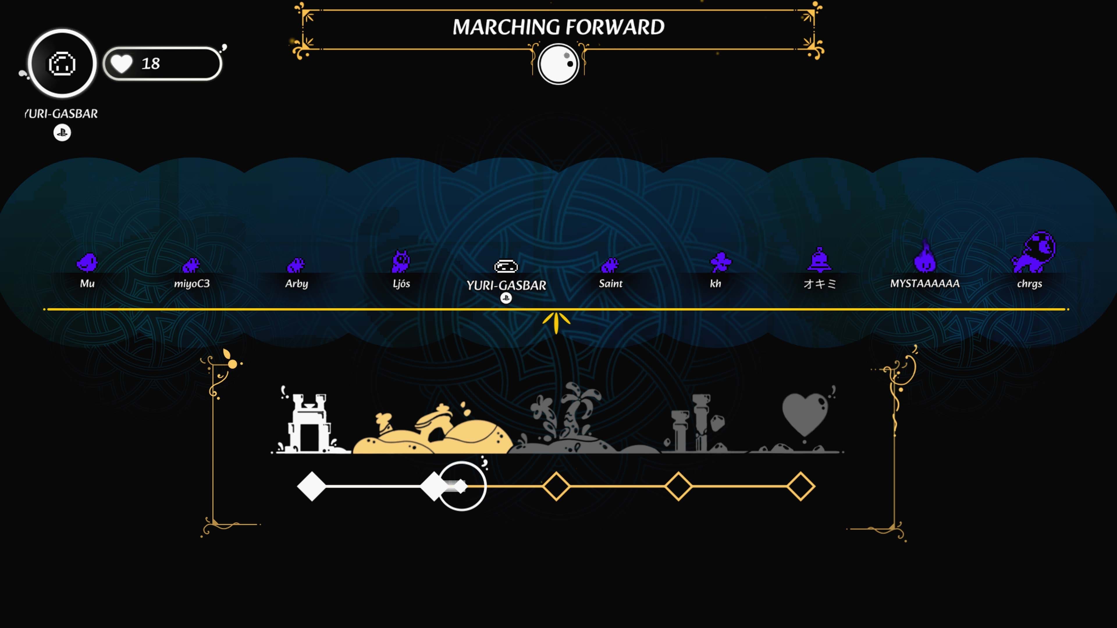 There are many ways to assist others, like dropping onto a spike, making a tombstone that others can use for traversal, singing at an audio switch to keep a door open, and holding a door with a switch to allow others to pass. Each time you assist another person, your actions are rewarded, and those rewards are tallied up at the end of the final stage, growing a karma tree and rewarding all participants with the hearts required to unlock additional characters, books and other skills or items. Rinse and repeat until you unlock the massive variety of characters. Each character also has tasks to complete during a run, and it can be collecting fruit, assisting others, or even gliding a certain distance. These tasks unlock additional karma rewards, accelerating your access to other unlockable characters, skills, and rewards.