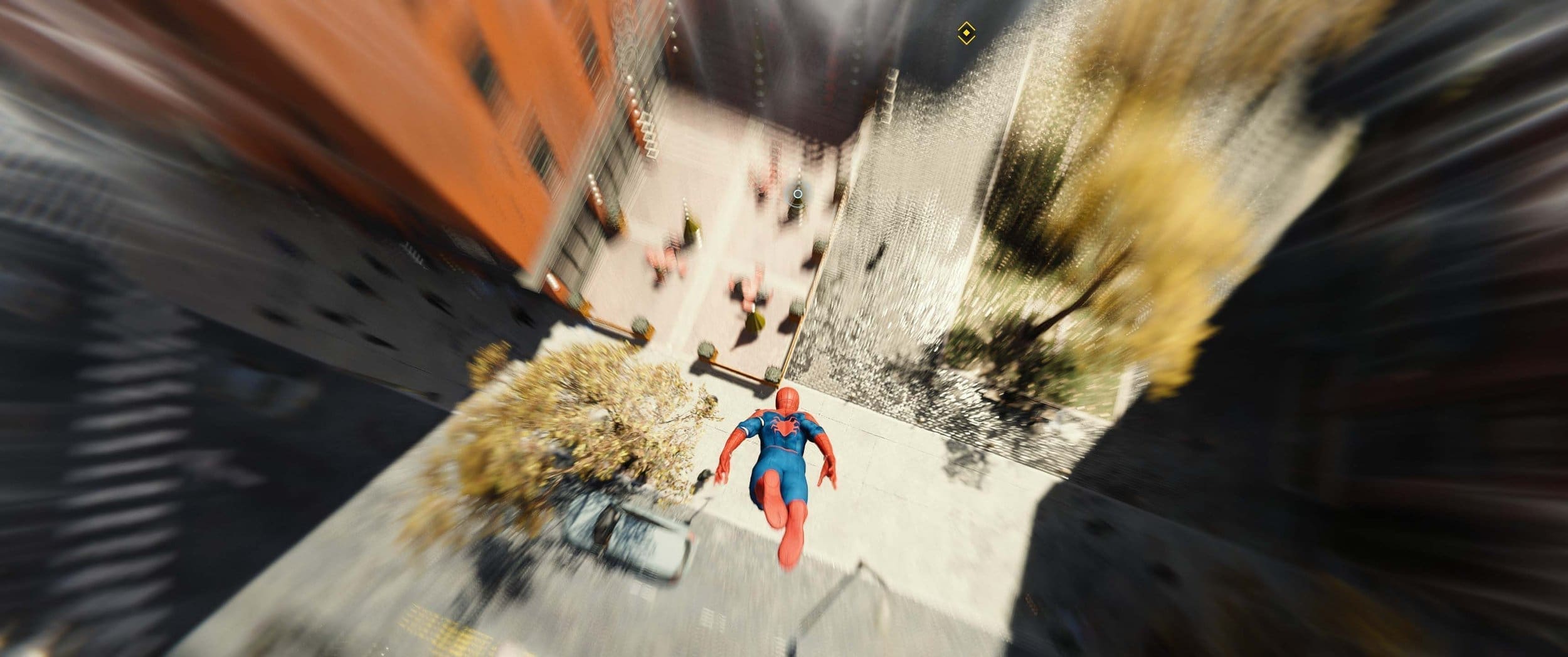 The player is fast drawn to the streets with accidents, crime and criminals fighting with police creating chaos, and the player is swung into the tutorial. Introducing the player to the combat aspect of the game using a mixture of webs, fists, and swing attacks, the player learns on the fly while beating up the bad guys. The Spidey Sense plays a pivotal role in these early fights allowing Spider-man to dodge and weave to avoid attacks while simultaneously laying the beat down on the criminals. A fresh batch of enemies come crashing onto the scene in a truck, they are fast to attack, but luckily Spidey is faster, webbing up the criminals and swinging back towards Fisk Tower while also making sure to belt out a few quips as we leave. We arrive at Fisk Tower, and the fun continues, the player is introduced to some more skills and chances to beat up bad guys. Working our way up the tower via elevator shafts and vents, we get to show off our smarts as we download Fisk’s database, and soon we bust into his office and face off against the brawler.