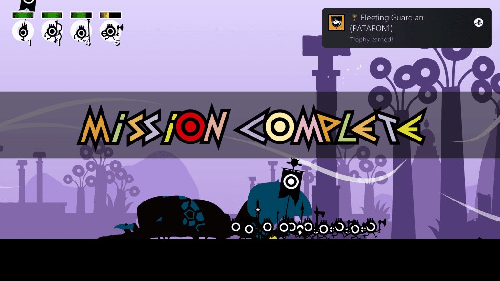 Though a God, I was a flawed one. I hate to admit it, but this game challenged me more than I expected. Hit the beat perfectly, and your followers are driven into a frenzy, dealing extra damage. Miss the beat, and they either stop in confusion or fall flat on their faces. My first battles were marked by frustration. I couldn’t match the beat, and the Patapon made sure I knew it, offering only disappointing glares and calling me out. Eventually, I discovered my TV was set to ‘Cinema’ mode instead of ‘Game’; the input lag was sabotaging my rhythm. Once corrected, everything clicked. My followers surged into battle, I hit Fever Mode, and we won our first true fight together. No losses, only triumph. I was thrilled to see them celebrate and find a new home.