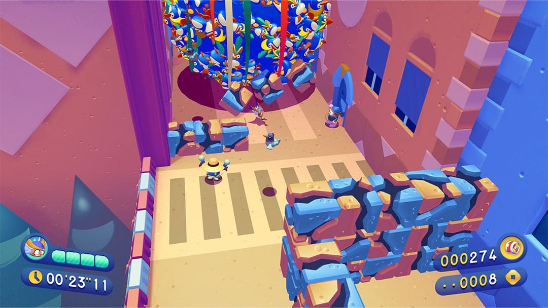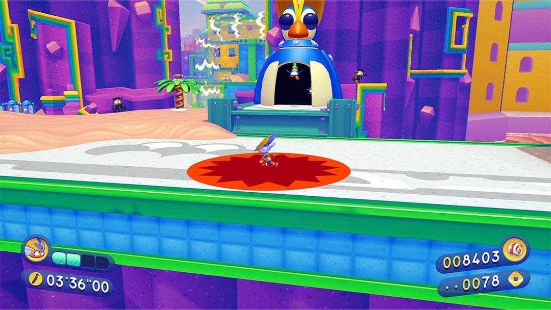 Much like Sonic games, there is the option to play Penny’s Big Breakaway at a slower pace, opening up a different game type. You’ll bump into characters during levels, giving you quick little side quests; secrets can be found in hard-to-reach corners, and there are plenty of coins to collect. The only downside to this pace of gameplay is that there’s a big timer stuck in the corner of the screen telling you how long you’re taking in the level. I wish that in ‘story mode,’ it would be turned off, as it can make you feel like you want to rush as much as you’re trying to tell yourself to chill.