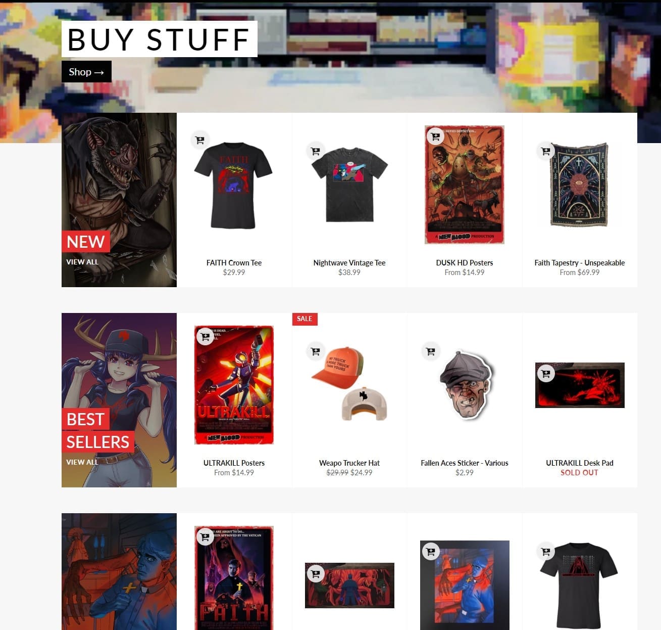 Publishers New Blood Interactive has a sale on their website right now across their merch.