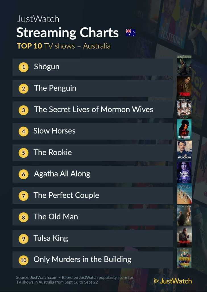 As I said above, The Penguin has debuted and gone straight into second place. But it’s the jump straight up to the top spot for Shogun once again, which is probably all thanks to its recent Emmy success.
