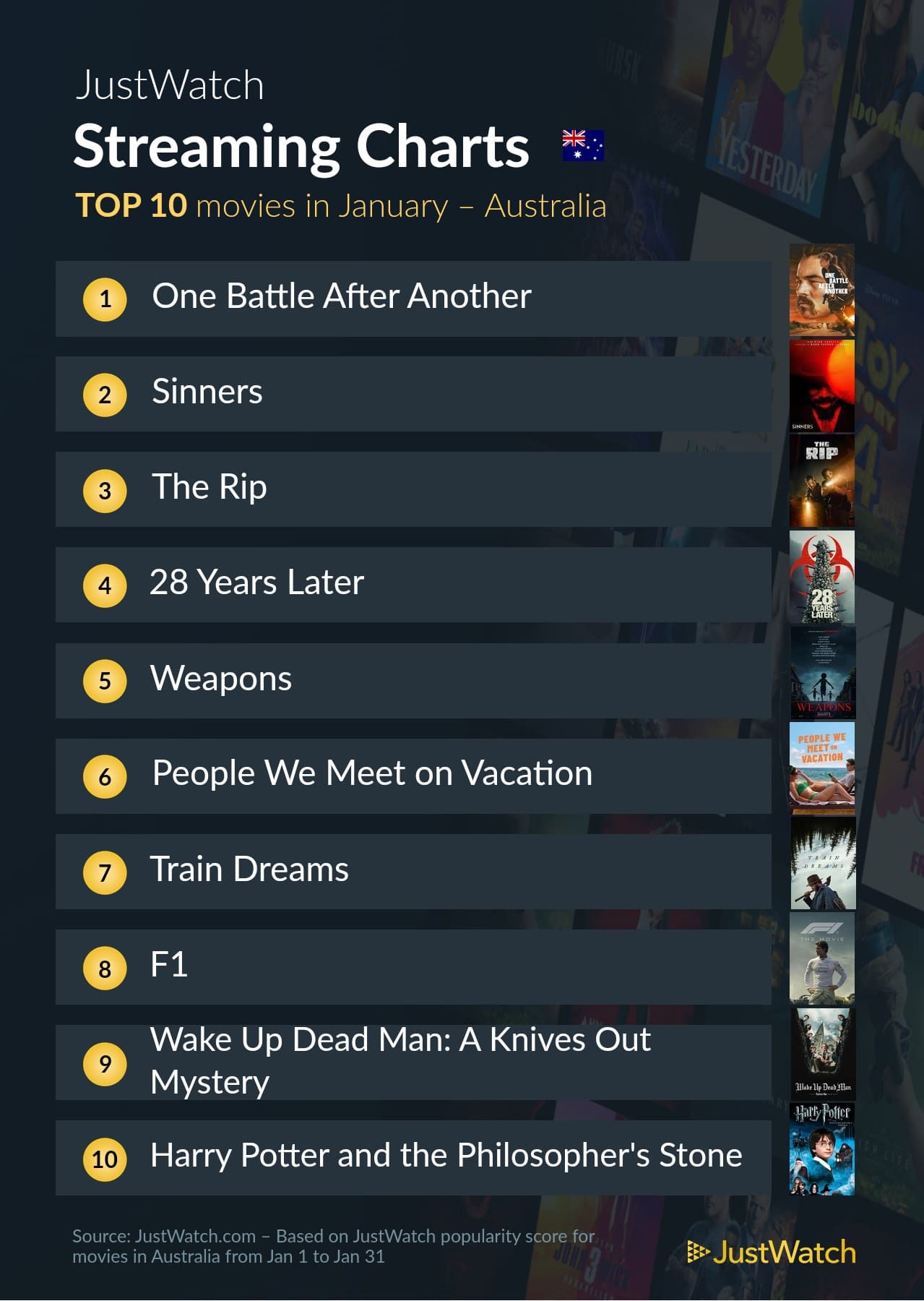 It’s no surprise that One Battle After Another took the top spot for the first month of 2026. It’s already an award-winning film, has plenty of other awards-season buzz, and stars Leonardo DiCaprio.