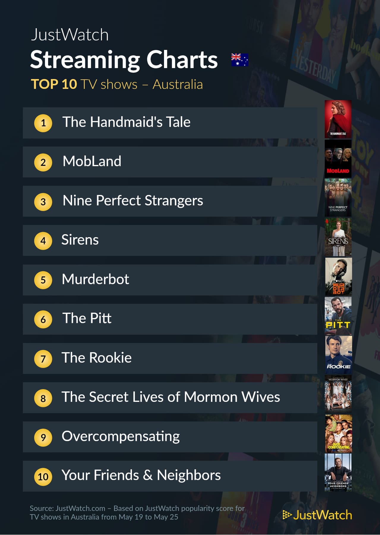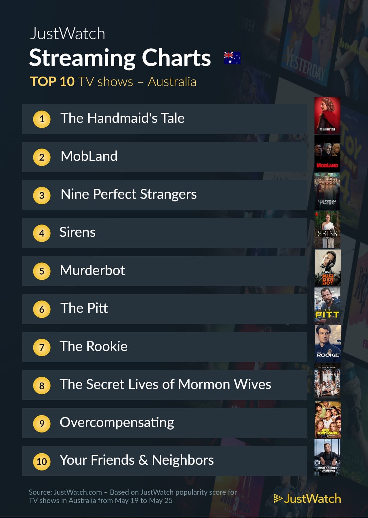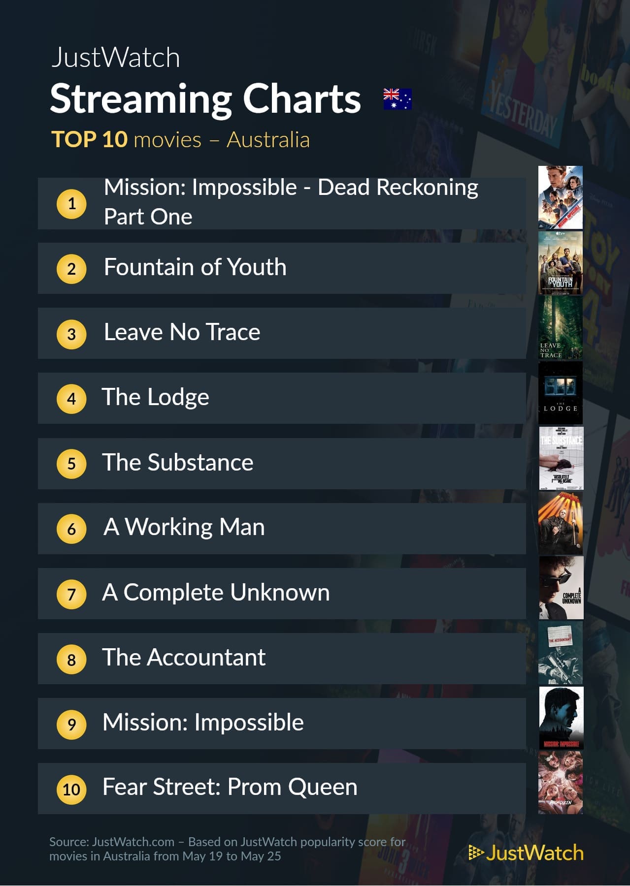 JustWatch has revealed the most-streamed movies and TV shows from May 19-25.