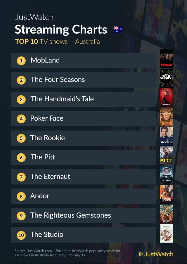 Paramount+ has been having great success with the continuing series MobLand, which stars Tom Hardy and is still airing its debut run, with a couple of episodes left. Poker Face is back for its second season; three episodes are out now, and it’ll be airing weekly. I’m going to be interested to see if Andor picks up its position next week with the final season having now finished airing.