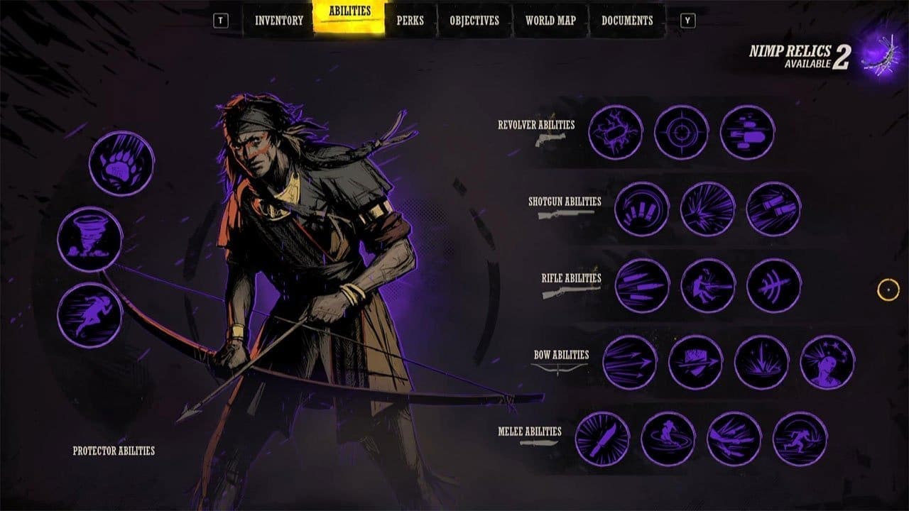 The sense of exploration is alive, and it is easily the most rewarded method of gameplay in Weird West. The West is not one open-world; rather, many smaller areas travelled via an overworld map. The scope is smartly used because many of these areas are handcrafted for exploration, and the game knows when and how to reward you for taking part. Maybe it is a simple Nimp Relic, which is used to unlock powers, or perhaps you find a way to approach the quest in a completely different way. All of this is achieved through interesting spaces to explore, and their tightness allows the game to be dynamic within these spaces. One town I came upon had become infested with a plague-like bee, and all the residents had bailed themselves up in the hall. After I cleared the town, the residents were able to clean up, and on subsequent visits, the town was again a hive of activity, which helped make these centres feel alive. There is also the opportunity to eliminate the population of a town, which allows for bandits and outlaws to move in and stake their claim.